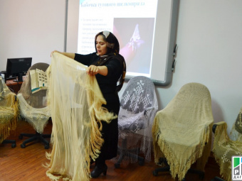 The teacher of tastar weaving Jamina Shugaibova demonstrated 100 years old tastars with various patterns. "One time, in search of the source material, I traveled to Central Asia and the entire Northern Caucasus. As a result, I brought about 100 species of caterpillars and started creating conditions for the life of silkworms in the republic" - Shugaibova confessed.