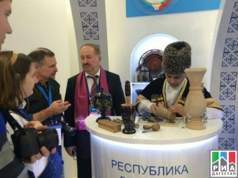 Kubachi silverwares, Untsukul woodworks with ornamental inlaid metal work on wood, Balkhar and Sulevkent art pottery were introduced at the showcase of the Republic of Daghestan.