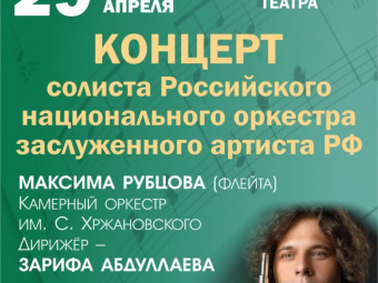 Kumyk State Drama and Music Theatre will host a performance by Maxim Rubtsov, an Honoured Artist of the Russian Federation, who will be accompanied by the Khrzhanovsky Chamber Orchestra under the direction of Zarifa Abdullaeva, an Honoured Artist of Russia.