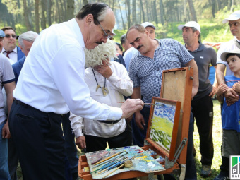 Makhachkala, August 21, 2017. On August 20, Dagestani Head, Ramazan Abdulatipov, participated in the ethno-cultural festival “Tarcho” held in the Akhvakh district of Dagestan. Abdulatipov examined the rural farmsteads and made a donation of a multimedia edition "We are the Russian people. Dagestan is multi-ethnic” to the local library.