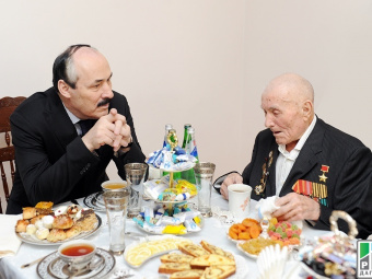 One of the Daghestanis, awarded by the title of Hero of the Soviet Union is veteran of the Great Patriotic War of 1941-1945 Yakov Suleimanov. Today, Dagestani Head Ramazan Abdulatipov has paid a visit to to see the veteran at home.