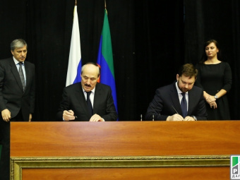 Ramazan Abdulatipov and Igor Barinov sign agreement on cooperation between Federal Agency for Affairs of Nationalities and Dagestan