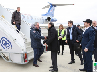 Makhachkala, February 12, 2015. Deputy Russian Prime Minister Dmitry Rogozin arrived in Dagestan today for an official visit. Dagestan Head Ramazan Abdullatipov met the dignitary at the Makhachkala airport.
