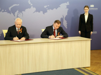 Zaur Askenderov the Chairman of the People's Assembly of the Republic а Dagestan and Konstantin Tolkachev the Speaker of the State Assembly - Kurultai of the Republic of Tatarstan have signed a cooperation agreement in the Tavrichesky Palace in St. Petersburg within the framework of work of the Legislators’ Council of the Russian Federation.