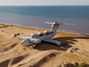 3. A massive aircraft carrier known as the Lun - the so-called Caspian Monster (an experimental craft measuring the size of a five-story building, developed by Soviet engineers) lies on the shore of the Caspian Sea.