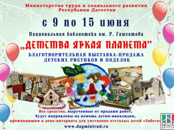 Makhachkala, June 9, 2014. On June 9, a charity selling exhibition of works participating in the "Bright childhood planet" contest opens at the Gamzatov National Library, a source in the ministry of labour and social development informed RIA "Daghestan".
