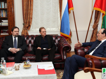 Makhachkala, February 9, 2017. Yesterday, February 8, the Head of Dagestan Ramazan Abdulatipov, being on a working visit to Moscow, met with the Director General of the JSC "Giprogor" Mikhail Grudinin. The meeting, organized in the Permanent Mission of the Republic of Dagestan at the Russsian Federation President, was also attended by the president of the economic partnership, "New economic growth" Mikhail Dmitriev and the director of the regional development department of the LLC "Infrastructure Economics Centre" Sergei Lozinsky.