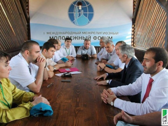 The authorities met at the "Kizlyar Lagoon" recreation center which is now hosting the 1st international interreligious youth forum. Committee Chairman Suleiman Magomedov briefed on what the committee do and introduced the staff to Evgeniy Eriomin.