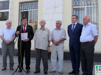 Makhachkala, September 2, 2015. The solemn memorial plaque opening ceremony to the prominent scientific and public figure Khalil Fataliyev who led the University in difficult war years took place September 1 in front of the main building of Dagestan State University on Korkmasov street in Makhachkala.