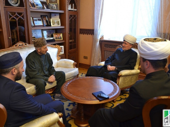 The meeting was also attended by Rector of Dagestan Islamic University Magomed-Hajji Abdulaev, first deputy chairman of the Russian Muftis Council Rushan-Hazrat Abbyasov, and adviser to the chairman of Russian Muftis Council Hezbulla-Hazrat Assuev. The muftis exchanged views on the processes taking place in the spiritual and moral spheres, discussed the results their joint activities like "Mawlid al-Nabi" and some others, and outlined plans for joint cooperation for the near future. Mufti Ravil Gainutdin thanked Sheikh Akhmad-Hajji Abdulaev for the support with holding "Mawlid al-Nabi" in Moscow and the opportunity to show there a greatest relic - the Prophet Muhammad’s hair (peace be upon him).