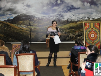 The university’s lecturer artist Assiyat Arslangereyeva told the children about the history of one of the most ancient and unique types of Dagestan art - silk embroidery now named the Kaitag embroidery after the place it was first found in. Most often, the embroidery was found in Akusha and Dakhadaev regions wh ere the majority of the population are Dargin. These were embroidered silk panels measuring approximately 100 to50 cm with original, unique patterns.