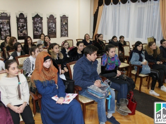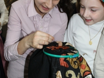 Makhachkala, February 13, 2015. The Museum of Russian Peoples' Friendship organized a workshop on the basics of the Kaitag embroidery for students of the 5th grade fr om the №13 Makhachkala secondary school and students fr om the arts and graphics faculty of Dagestan State Pedagogical University.