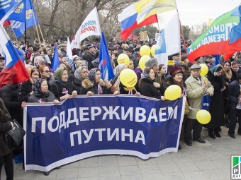 The idea of the rally found a warm response among workers, students, institutions, public, veteran, and youth organizations, and departments of Russian political parties. All Daghestan nationalities participated in the event. People came with Russian flags and slogans "Daghestan for Crimea", "Fascism Won’t Work!", "For Crimea’s Future!", portraits of prominent Daghestani, Soviet Union Heroes Ametkhan Sultan and Magomed- Zagid Abdulmanapov who had defended the holy Crimean land from the enemy during the World War II.