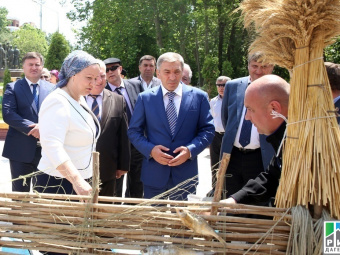 The courts were deployed on the arena in front of the House of Friendship in Makhachkala. The carefully recreated atmosphere of Cossack antiquity allowed the guests to get acquainted with the life, culture and history of the Cossacks and the Russians. Pleasing to the eye were colourful performances by Russian folk groups from Kizlyar as well as Tarumovka and Kizlyar regions. After listening to the solemn speeches, the government delegation saw the exposition of Dagestan National Library and the Gamzatova Museum of Fine Arts.