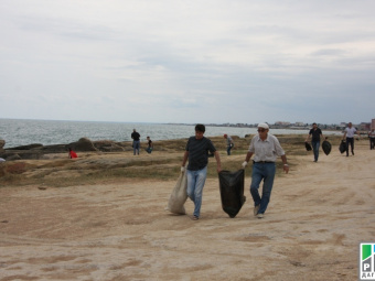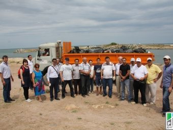 Makhachkala, August 10, 2015. The journalists of state newspapers and TV stations arrived in Dagestan town of Derbent to take part in subbotnik (day of volunteer work) and assist the municipal services to clear garbage on the seashore.