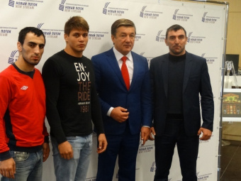 The press conference brought together State Duma deputy Rizvan Kurbanov (the main organizer of the tournament), well-known fighter Oleg Taktarov, president of the "New Stream" public movement Yuri Navrazhny, president of the North Caucasus Federal District MMA Federation Abdulkarim Aigunov (a promoter of the tournament), and some of the athletes.