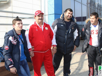 Makhachkala, November 26, 2015. Dagestani sportsmen, the winners of the World arm-wrestling championship among people with damage to the musculoskeletal system have been solemnly met today, November26, at the airport of Makhachkala. The international competitions were held on November 21 - 24 in Polish city of Rumia. The Russian team included three trainees of Dagestan schools of arm-wrestling.